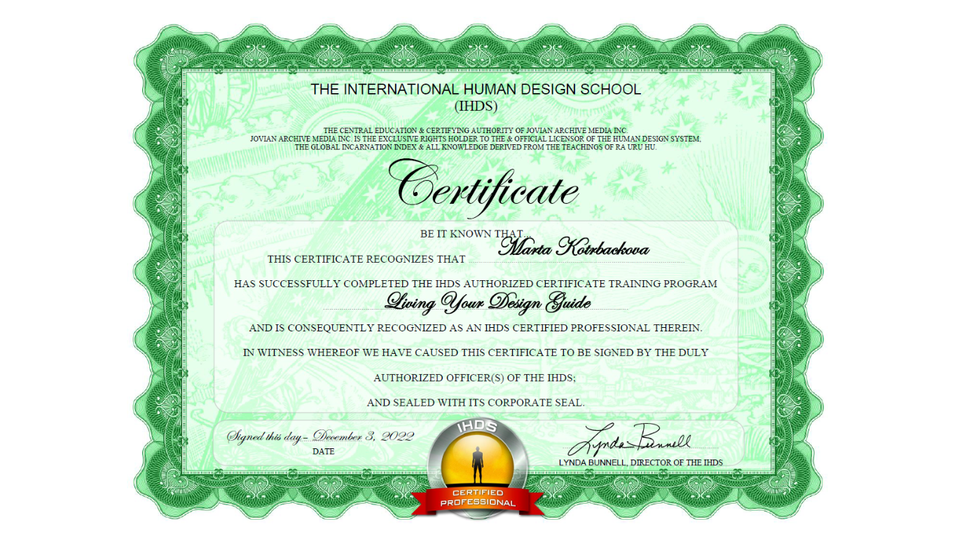 Jde o certifikovaný úvodní kurz Human designu - Žít svůj design, na který můžete navázat dalším oficiálním studiem.